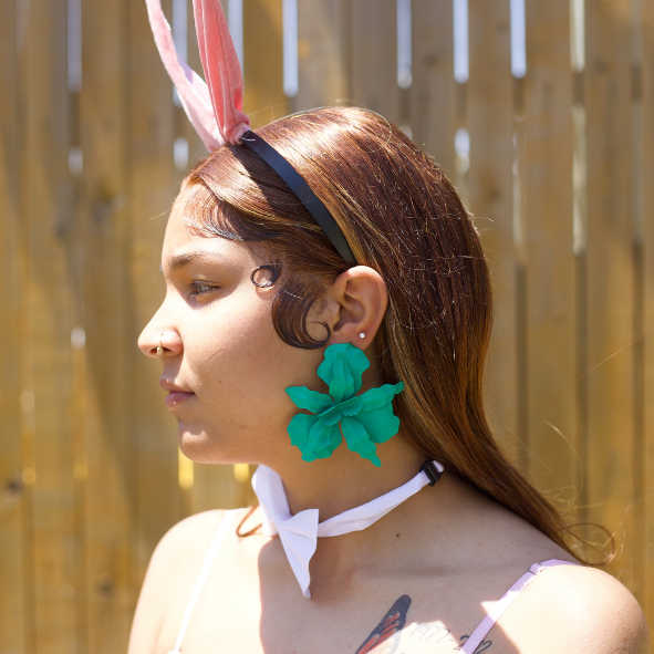 Go big and bloom. These oversized floral earrings are crafted with layered, sculpted petals that create depth, movement, and a soft matte finish. The bold green hue makes them a head-turning statement piece, while their lightweight design keeps them comfortable for all-day wear. Style with a sleek bun, sundresses, or swimwear for a stunning tropical look.