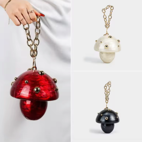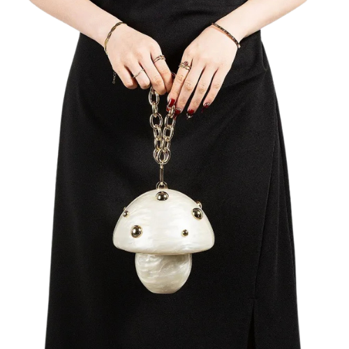 Make a bold, whimsical statement with our Mushroom Luxe Statement Bag — a true show-stopper crafted for fashion lovers who aren’t afraid to stand out. Designed in a rich, marbled white finish and accented with gleaming gold studs, this sculptural bag transforms a playful silhouette into a high-fashion accessory.