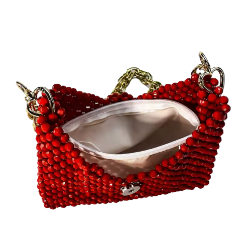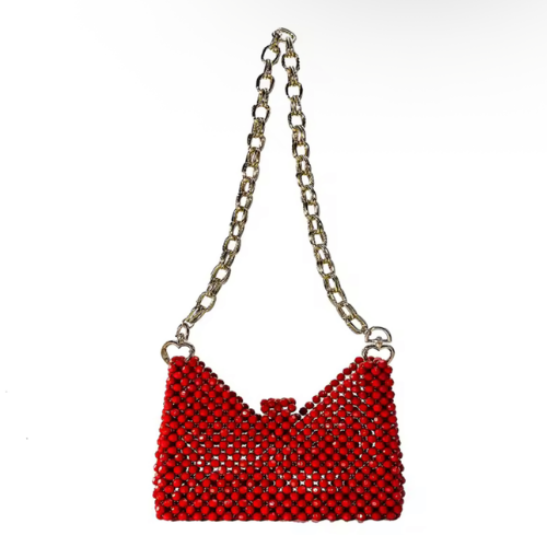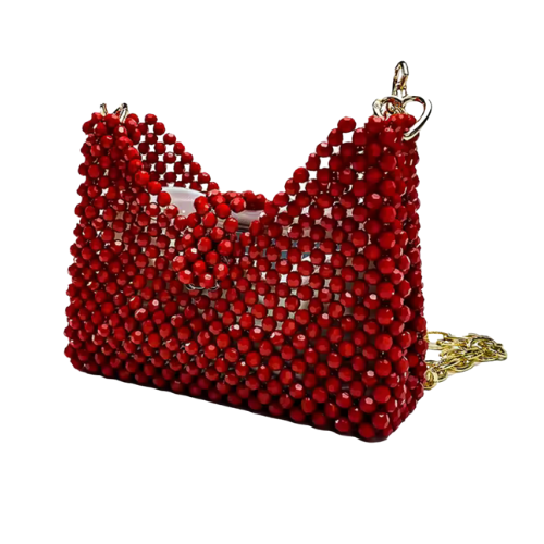 Turn heads with this beautifully handcrafted red beaded shoulder bag — the perfect blend of style, structure, and standout detail. Designed with a sturdy beaded exterior and gold-tone hardware, this bag adds a bold pop of color to any outfit.