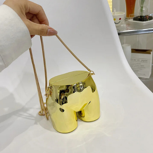 ake a bold, artistic fashion statement with our Golden Sculptural Body Mini Bag. Designed to turn heads, this unique handbag features a glossy, mirror-finish gold exterior shaped in a modern, abstract body form. It blends luxury, art, and playful creativity—perfect for trendsetters who love standout accessories.