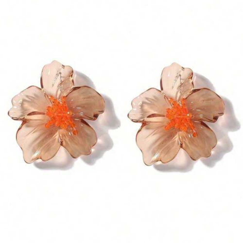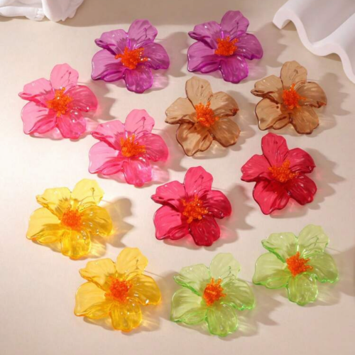 Add a burst of island sunshine to your look with our Tropical Bloom Acrylic Flower Earrings. These hibiscus-inspired blooms are crafted from glossy, translucent acrylic that catches the light beautifully, giving each petal a radiant, glass-like glow. Finished with textured beaded centers, they bring the perfect blend of bold color and playful charm.